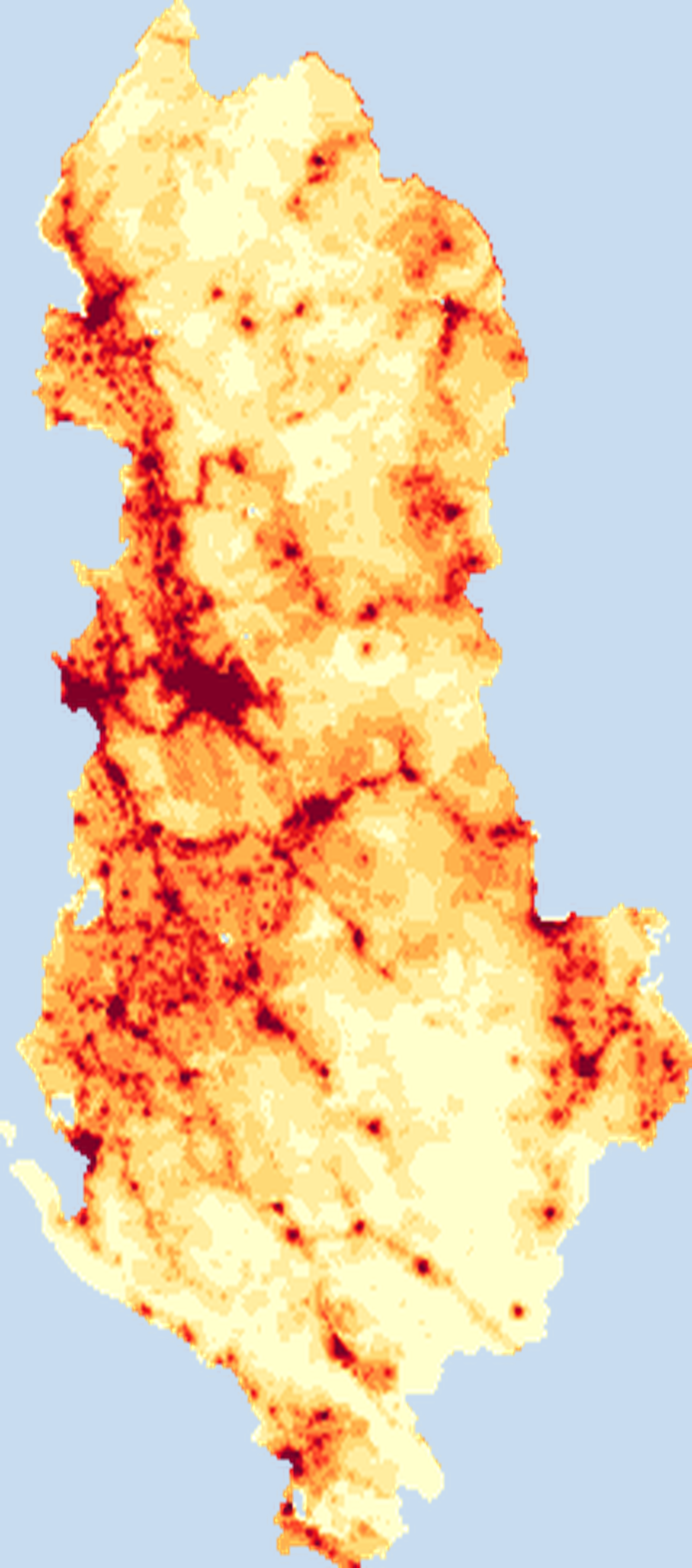 Population density map of Albania showing the distribution of people per square kilometer. View all Albania statistics →