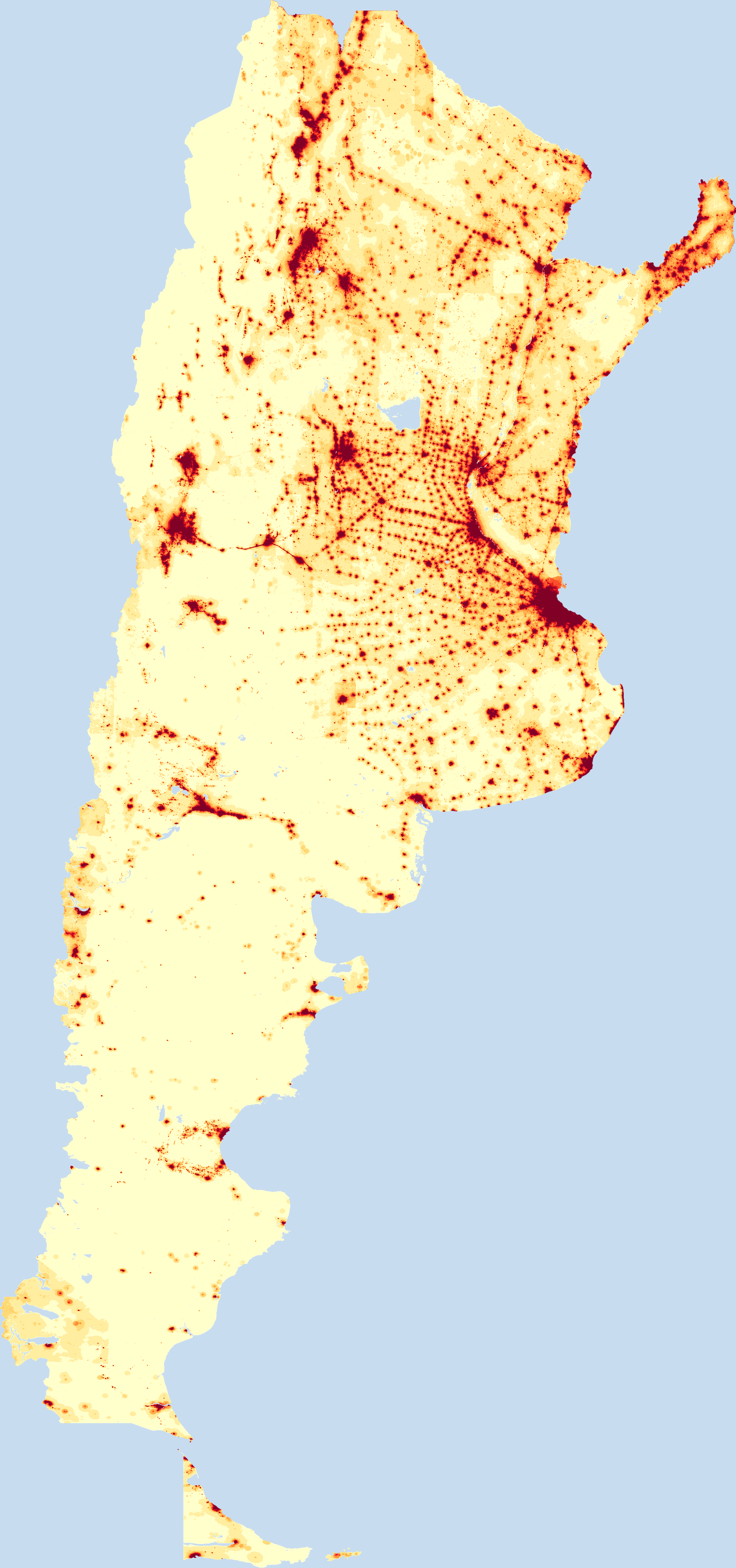 Population density map of Argentina showing the distribution of people per square kilometer. View all Argentina statistics →