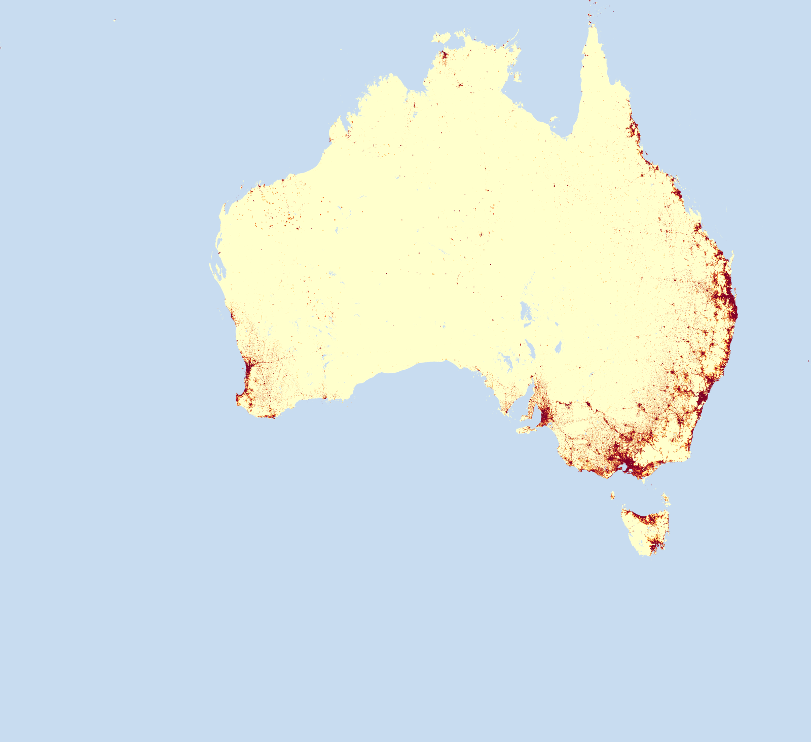 Population density map of Australia showing the distribution of people per square kilometer. View all Australia statistics →