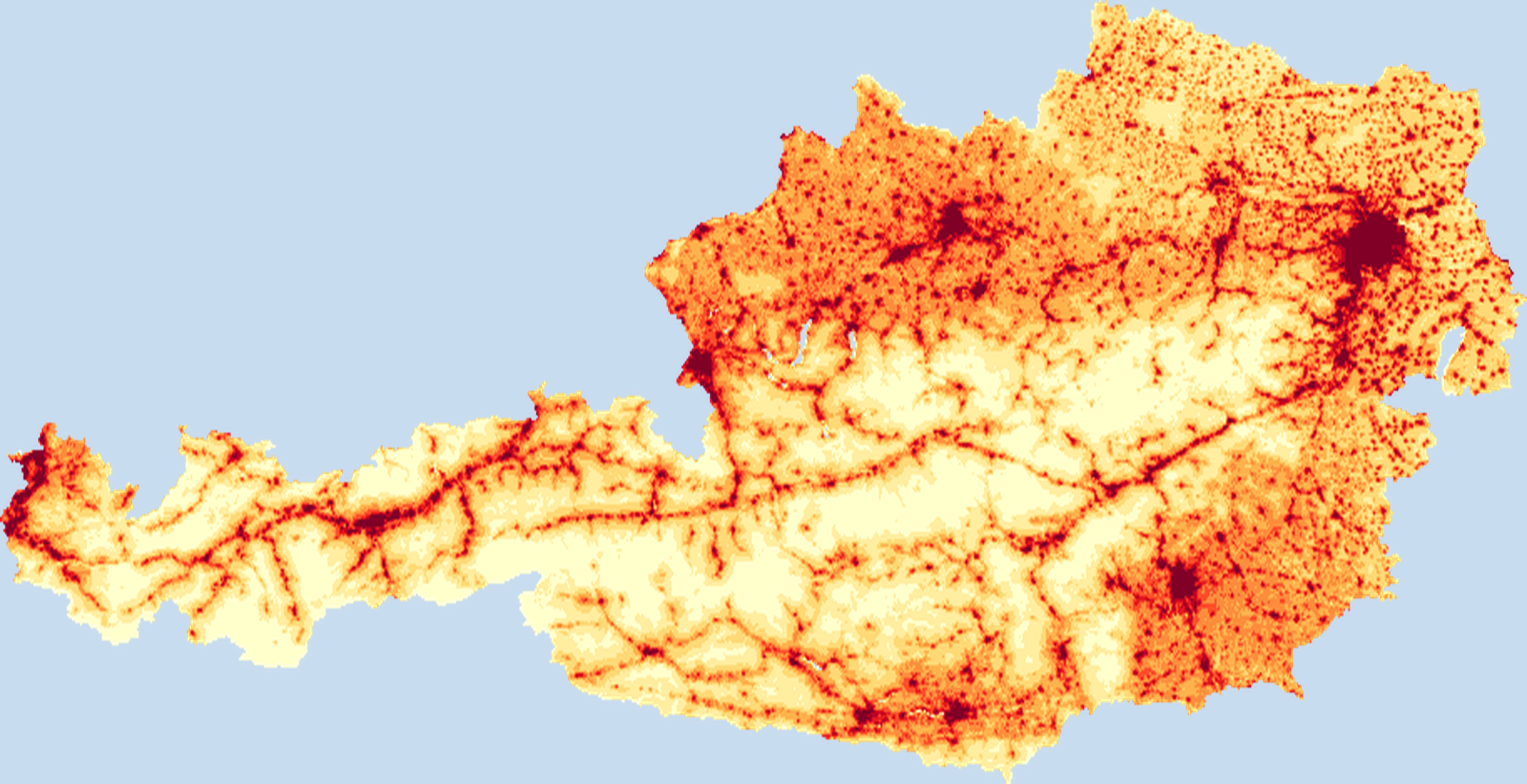 Population density map of Austria showing the distribution of people per square kilometer. View all Austria statistics →