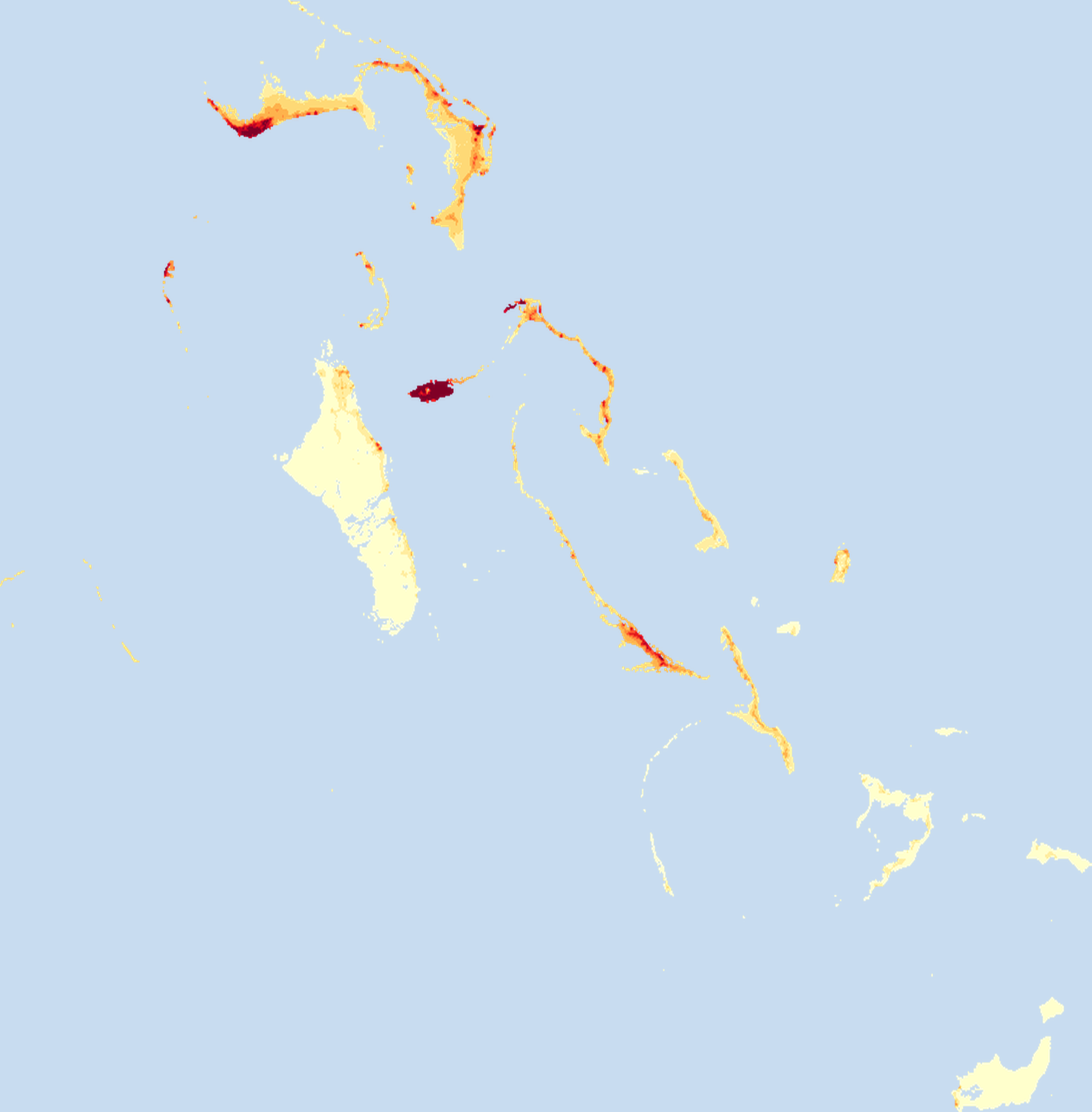 Population density map of Bahamas, The showing the distribution of people per square kilometer. View all Bahamas, The statistics →