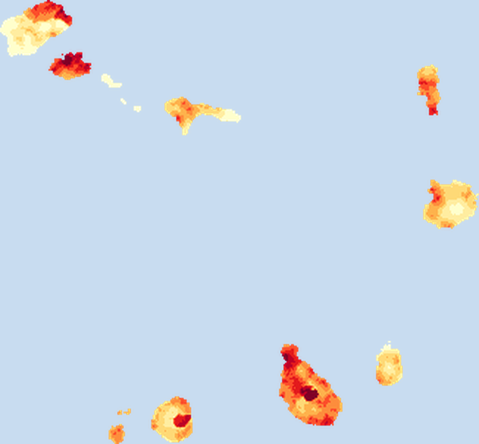 Population density map of Cabo Verde showing the distribution of people per square kilometer. View all Cabo Verde statistics →