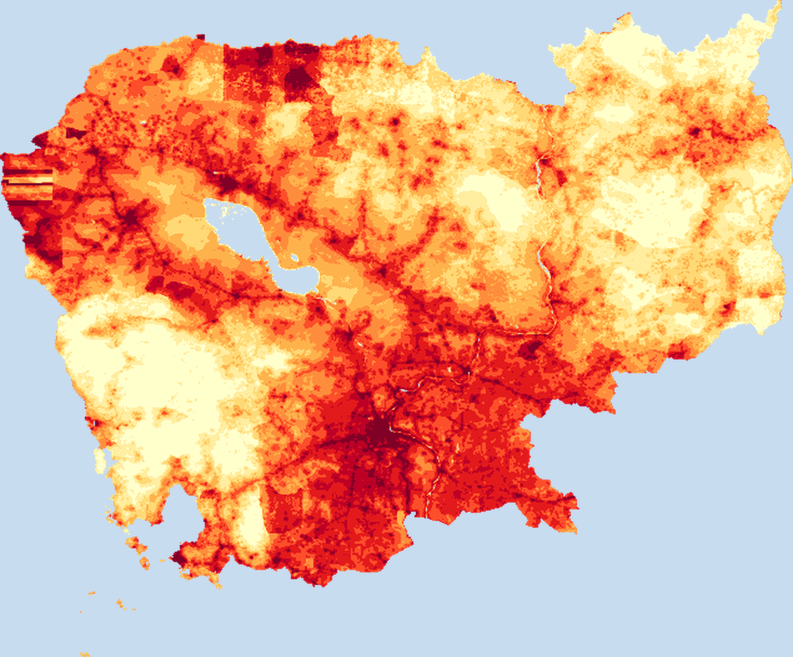 Population density map of Cambodia showing the distribution of people per square kilometer. View all Cambodia statistics →