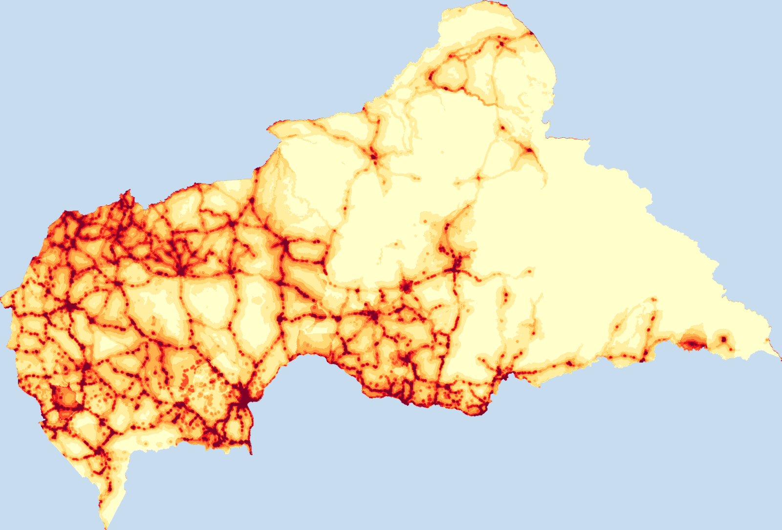 Population density map of Central African Republic showing the distribution of people per square kilometer. View all Central African Republic statistics →