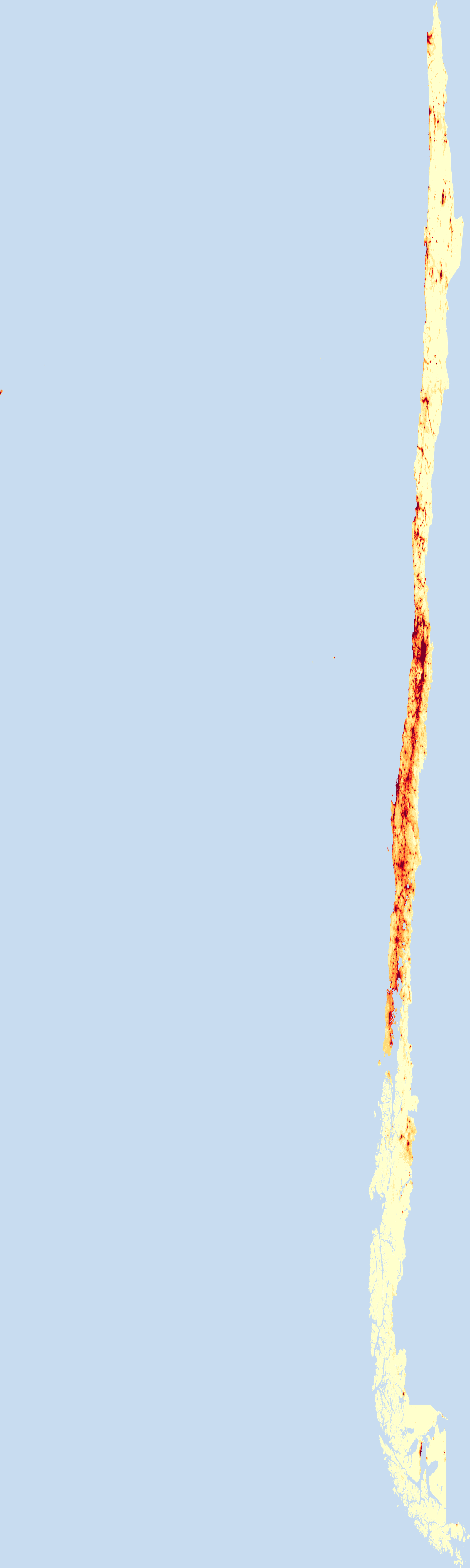 Population density map of Chile showing the distribution of people per square kilometer. View all Chile statistics →