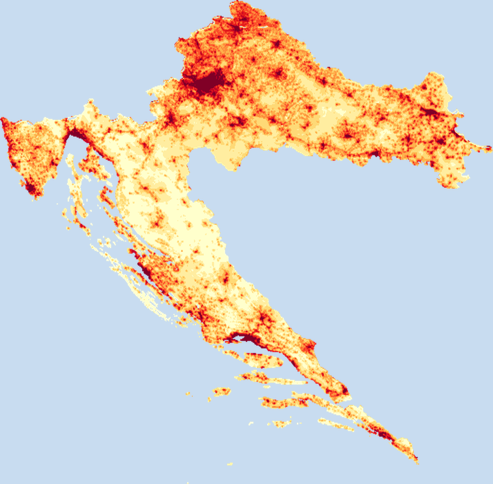 Population density map of Croatia showing the distribution of people per square kilometer. View all Croatia statistics →
