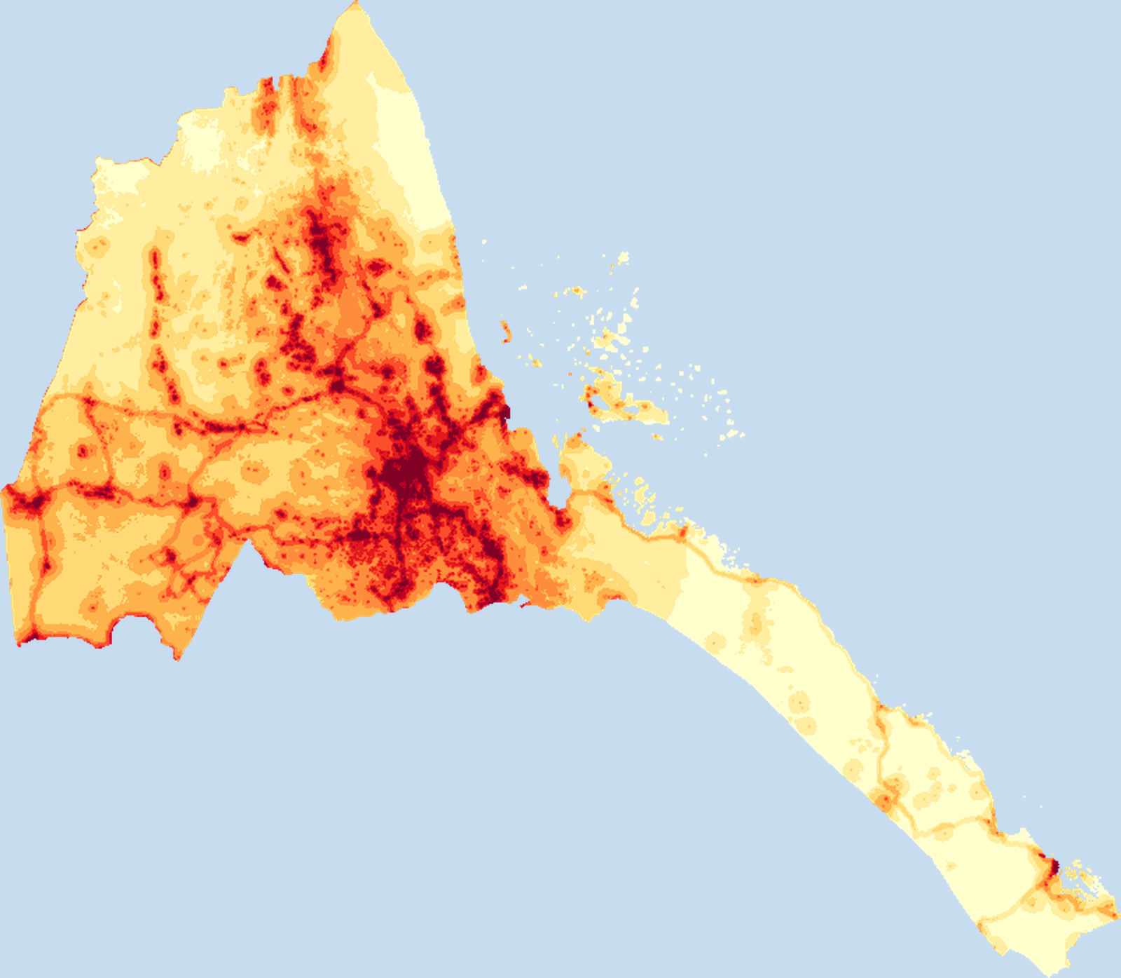 Population density map of Eritrea showing the distribution of people per square kilometer. View all Eritrea statistics →