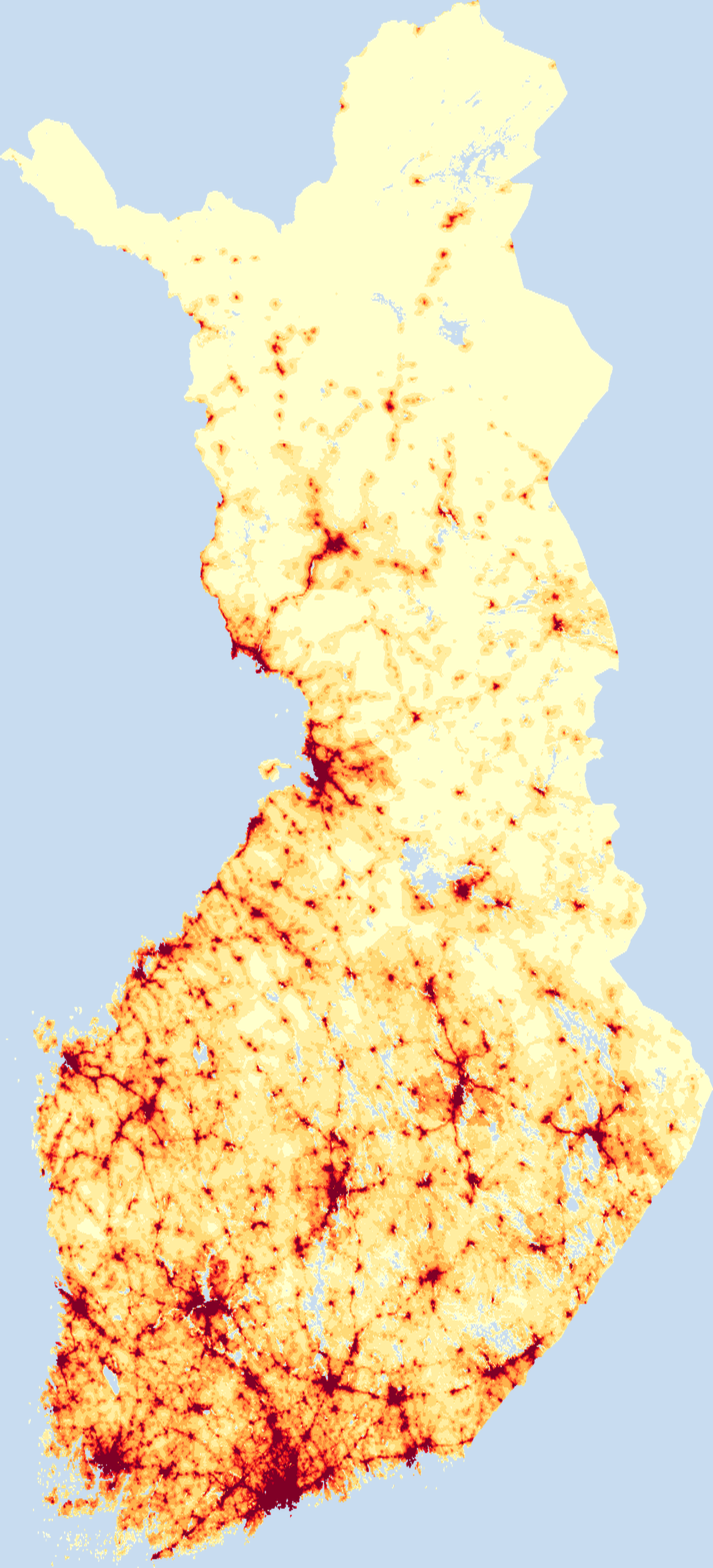 Population density map of Finland showing the distribution of people per square kilometer. View all Finland statistics →