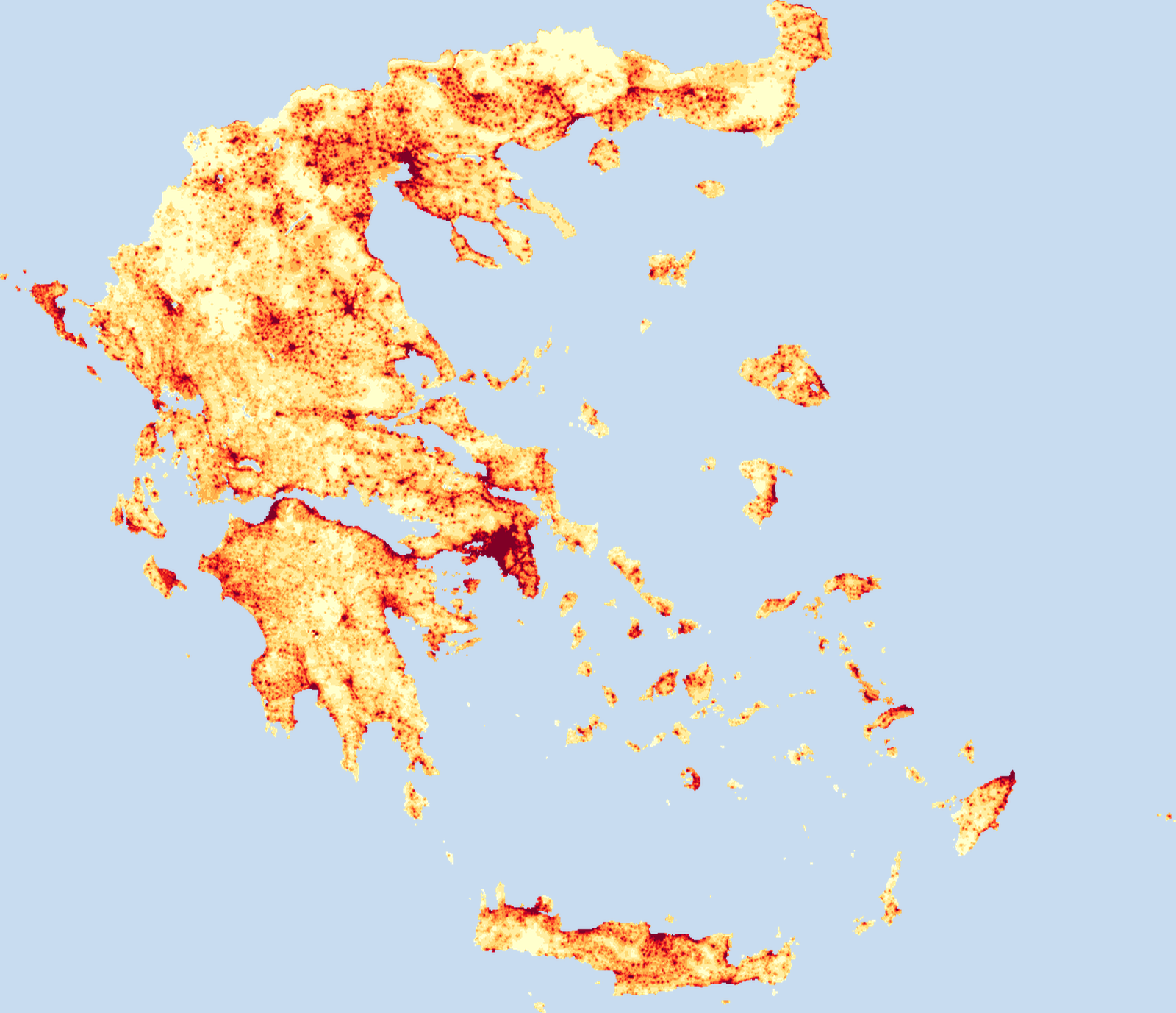 Population density map of Greece showing the distribution of people per square kilometer. View all Greece statistics →