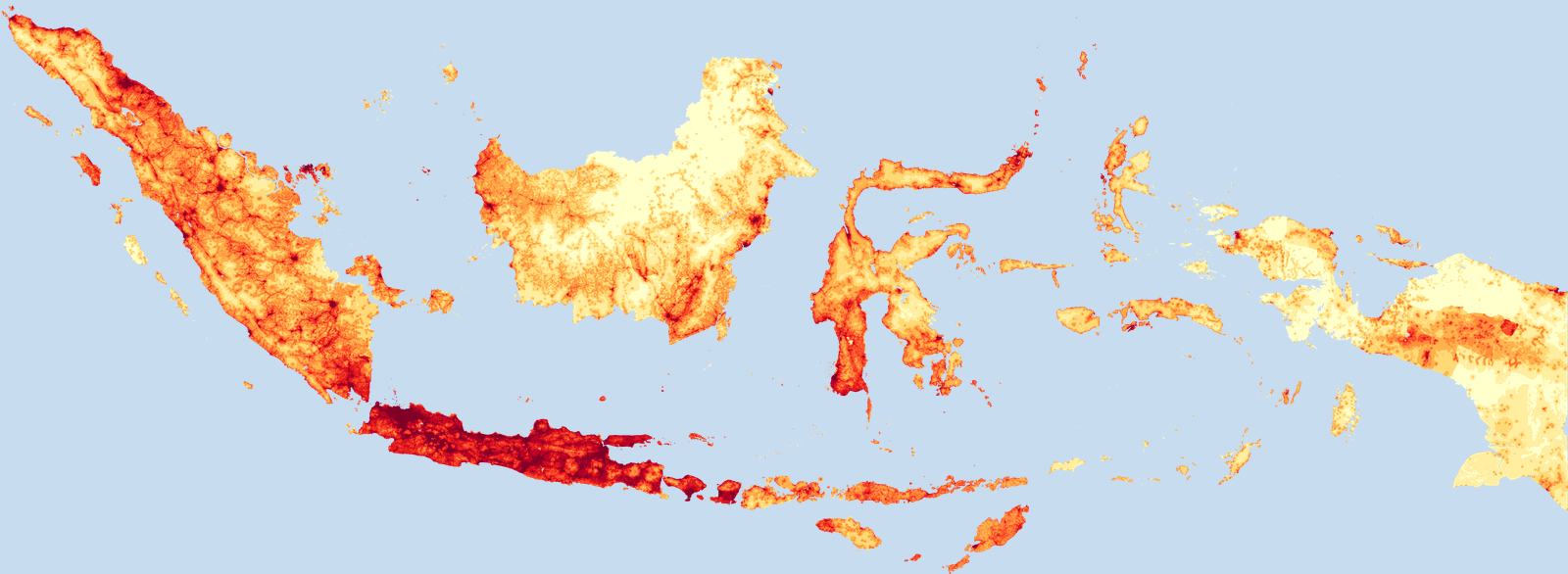 Population density map of Indonesia showing the distribution of people per square kilometer. View all Indonesia statistics →