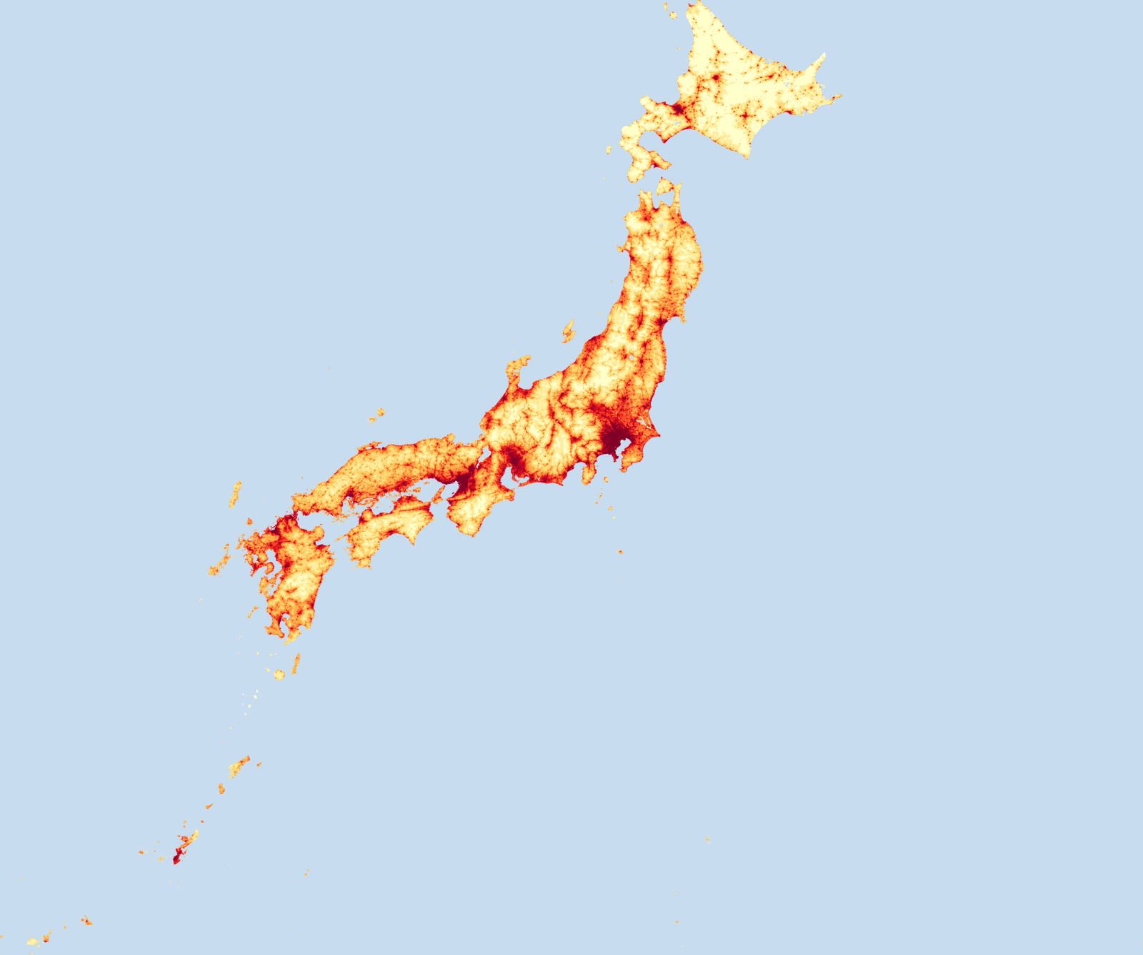 Population density map of Japan showing the distribution of people per square kilometer. View all Japan statistics →