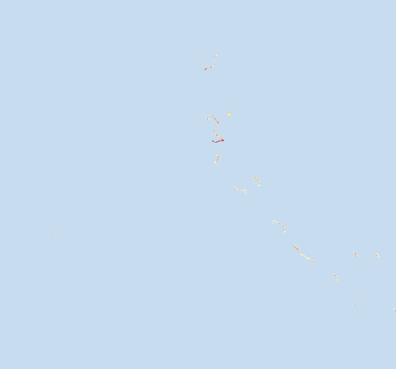 Population density map of Kiribati showing the distribution of people per square kilometer. View all Kiribati statistics →