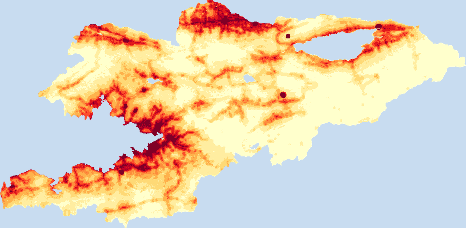 Population density map of Kyrgyz Republic showing the distribution of people per square kilometer. View all Kyrgyz Republic statistics →