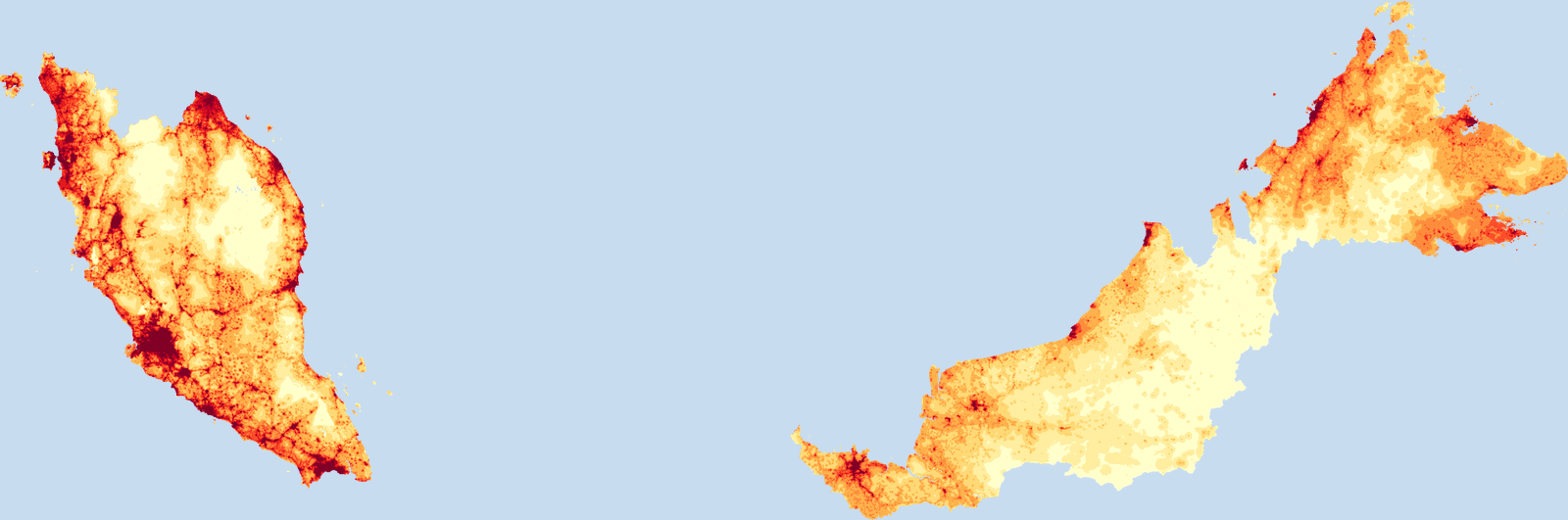Population density map of Malaysia showing the distribution of people per square kilometer. View all Malaysia statistics →