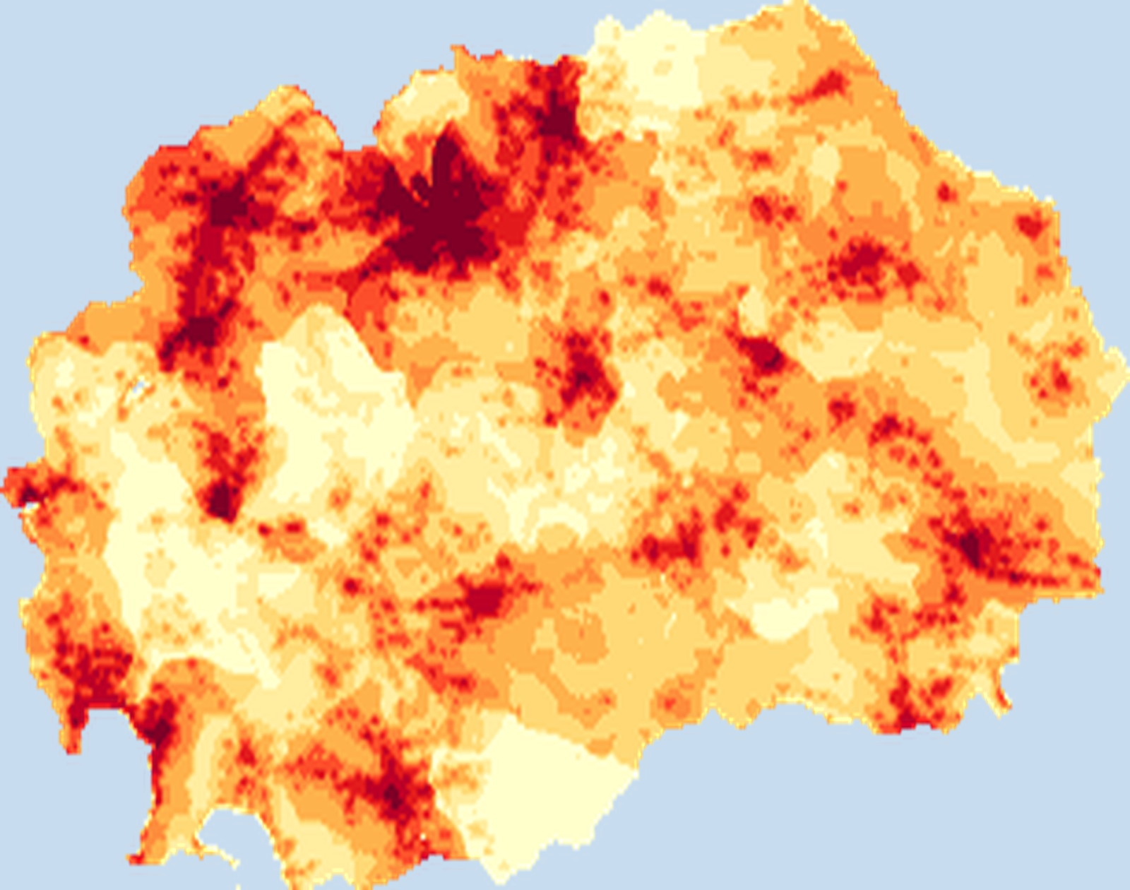 Population density map of North Macedonia showing the distribution of people per square kilometer. View all North Macedonia statistics →