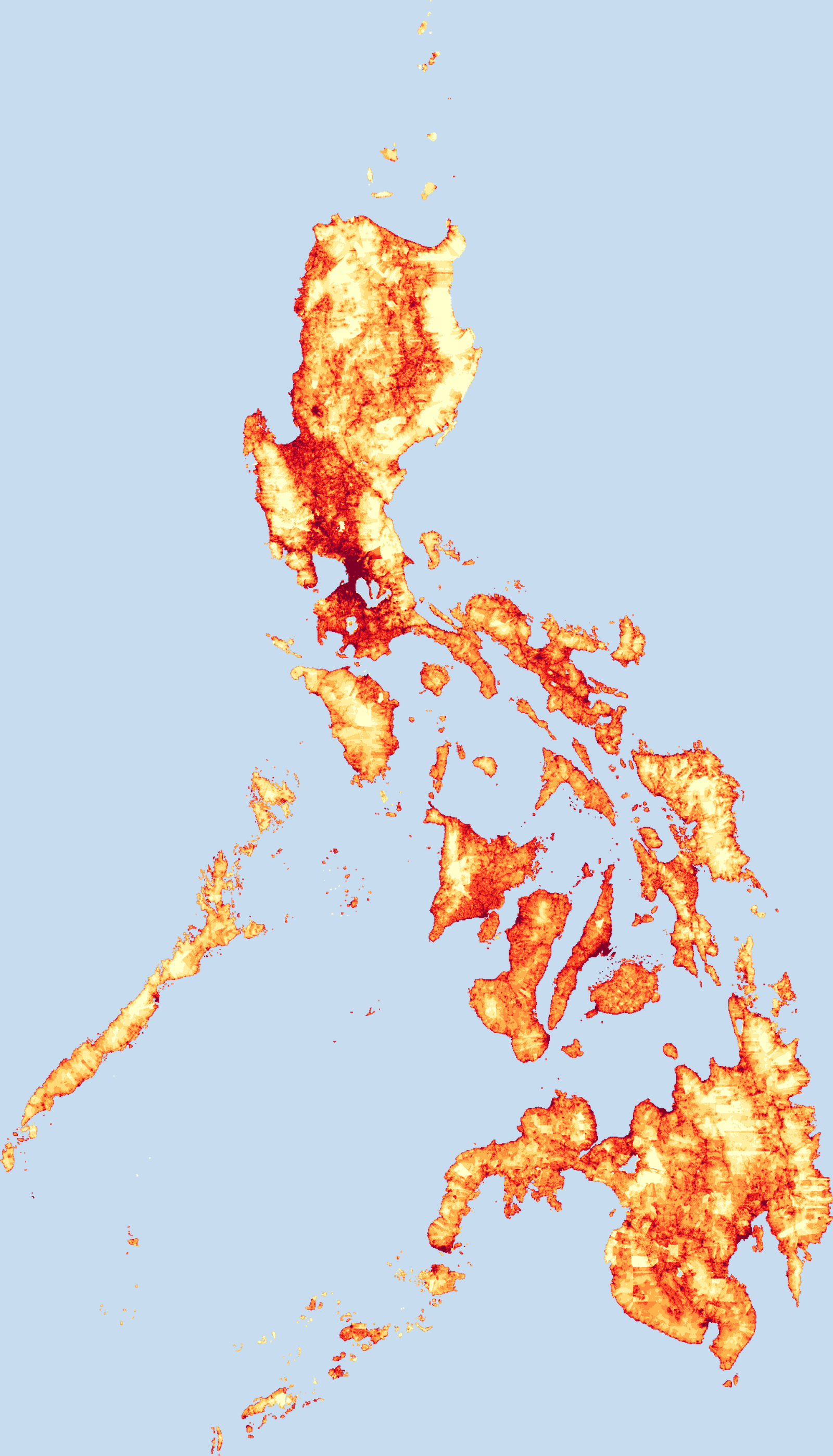 Population density map of Philippines showing the distribution of people per square kilometer. View all Philippines statistics →
