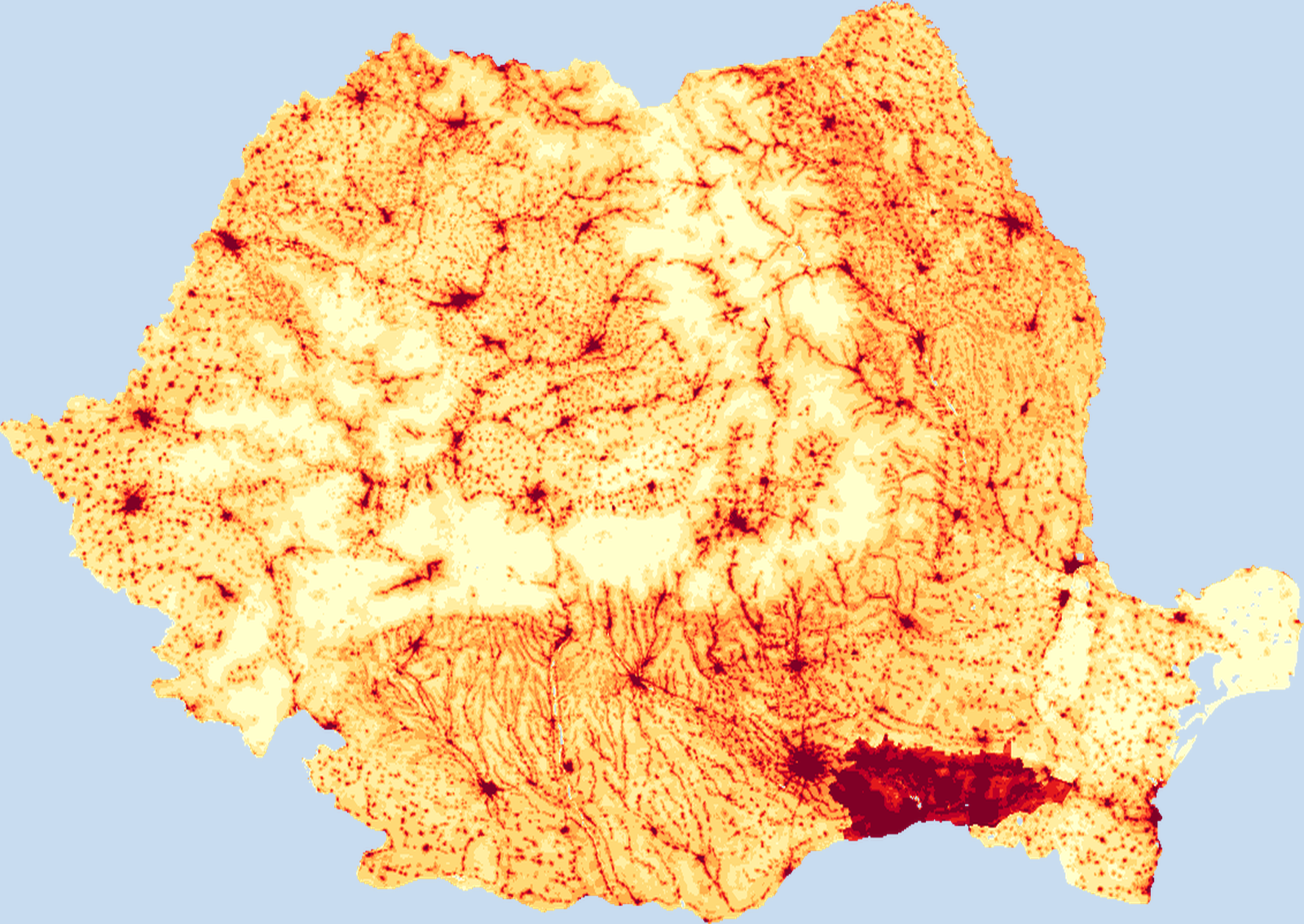 Population density map of Romania showing the distribution of people per square kilometer. View all Romania statistics →
