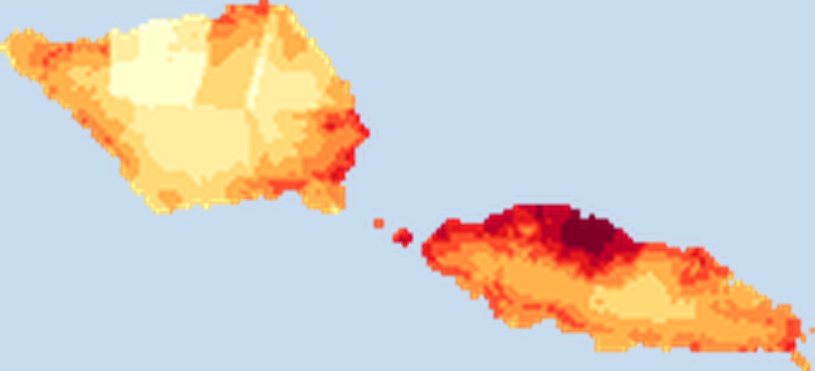 Population density map of Samoa showing the distribution of people per square kilometer. View all Samoa statistics →