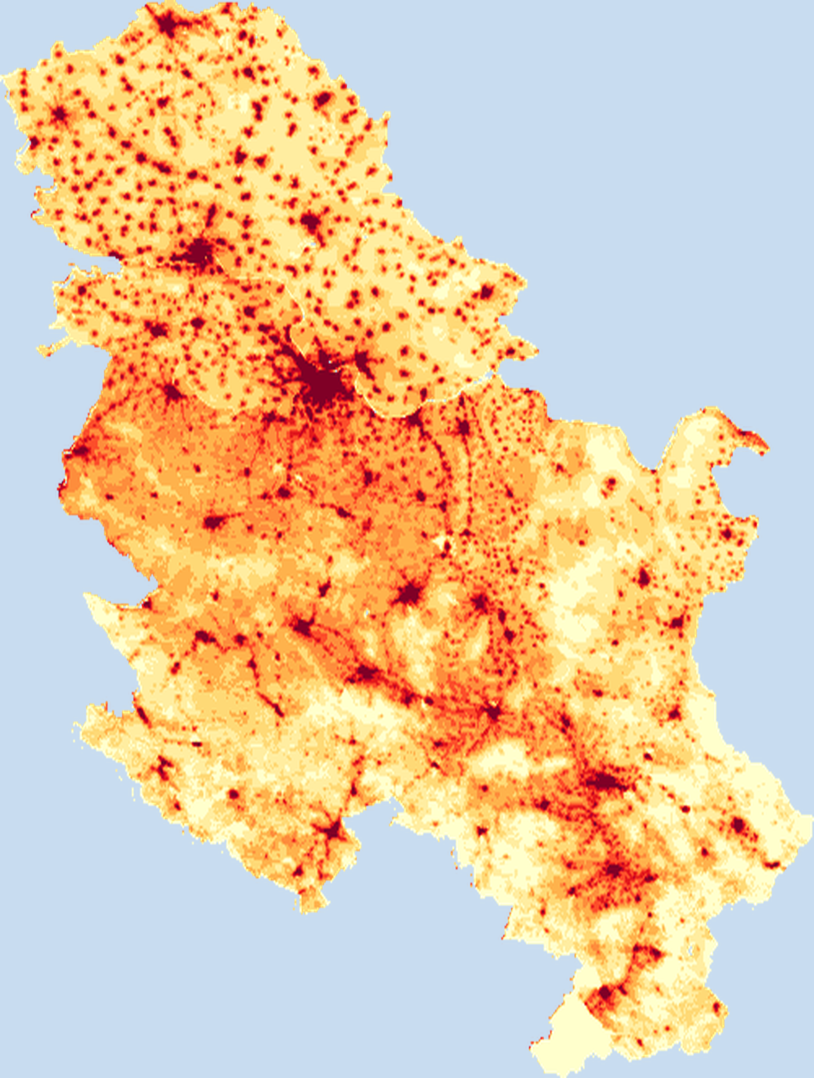 Population density map of Serbia showing the distribution of people per square kilometer. View all Serbia statistics →