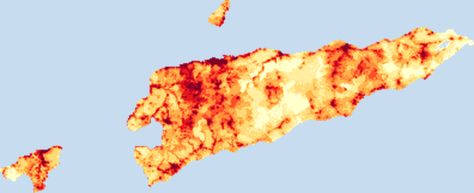 Population density map of Timor-Leste showing the distribution of people per square kilometer. View all Timor-Leste statistics →